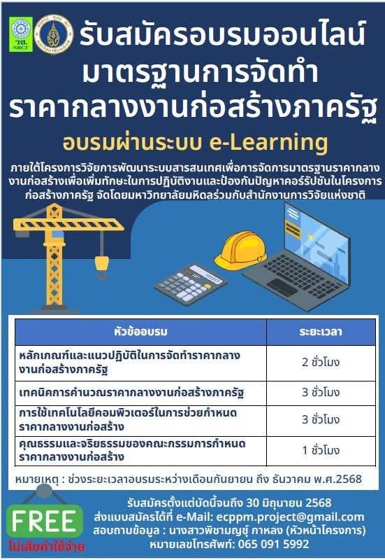 หลักสูตรหลักเกณฑ์ แนวปฏิบัติการคำนวณราคากลางงานก่อสร้าง
